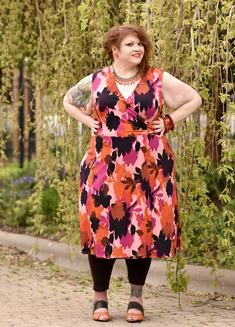 Dress: Blush & Orange Floral Faux-Wrap Dress by Donna Morgan (size 24) via Gwynnie Bee