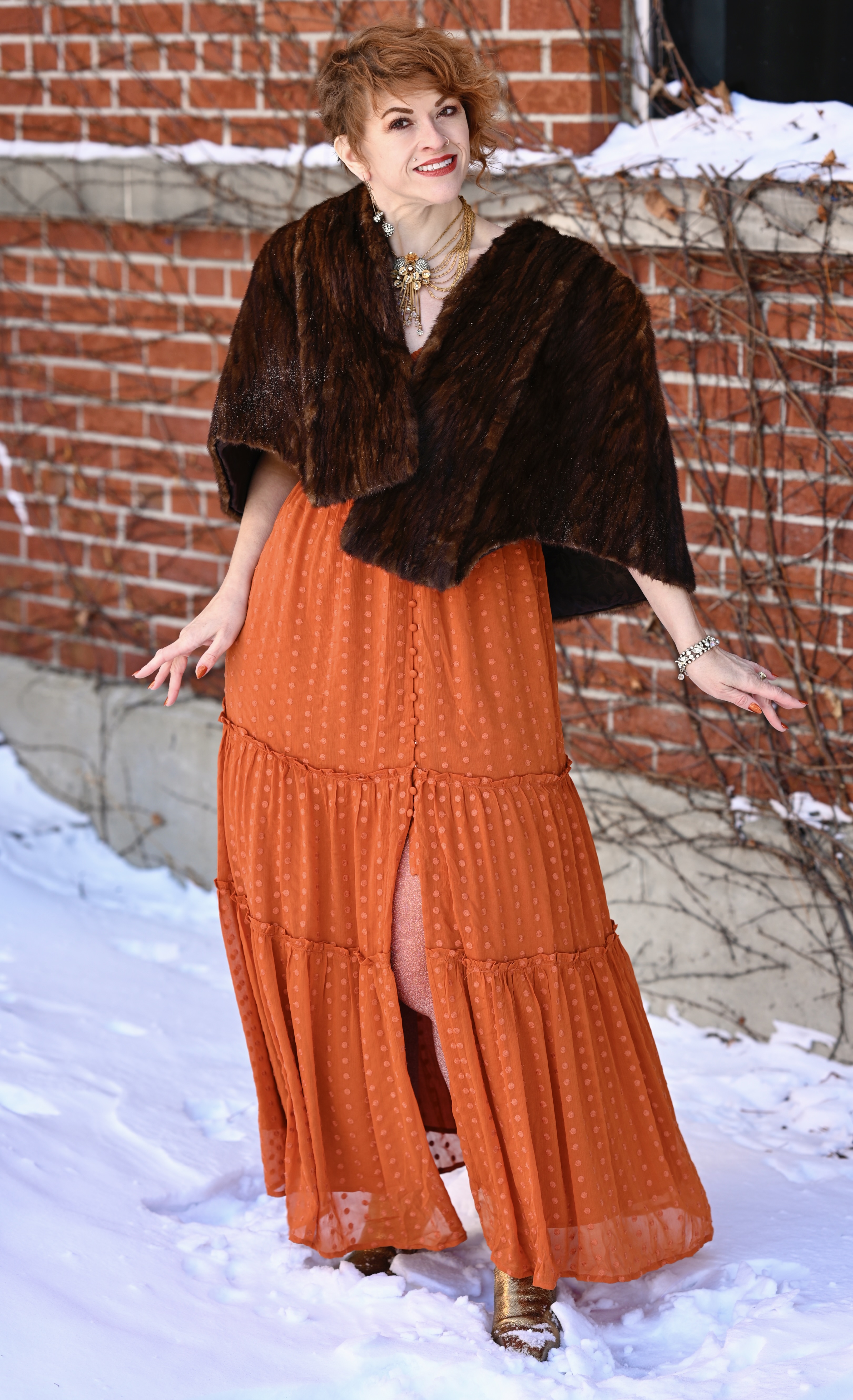 David found this mink wrap for me at Vinny's...this was my first time wearing it...& oh, was it warm. But it was no match for this below 0 (-30-something with windchill) windy day. My eyes were watering.